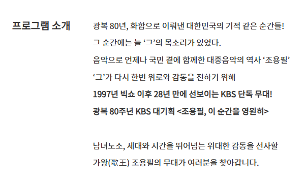 ✅ 공연 개요: ‘이 순간을 영원히 – 조용필’ 콘서트란?