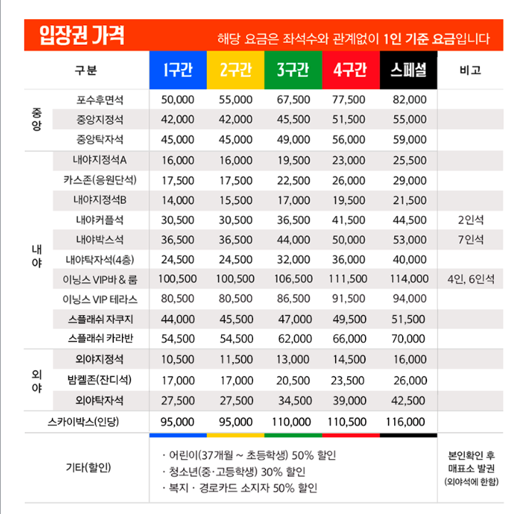 - 예매 채널: 이글콕 앱, 홈페이지, 전화